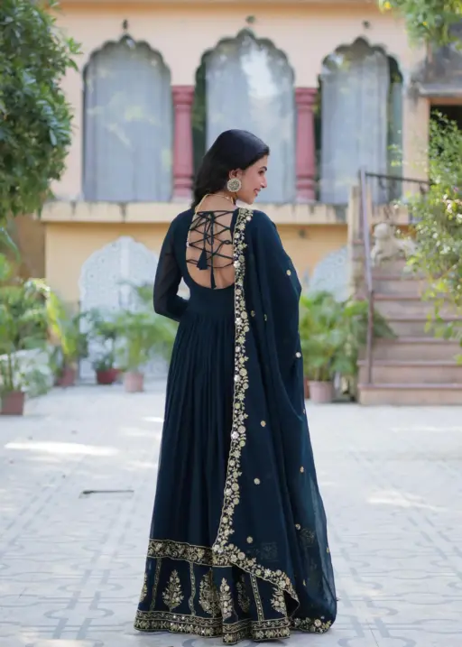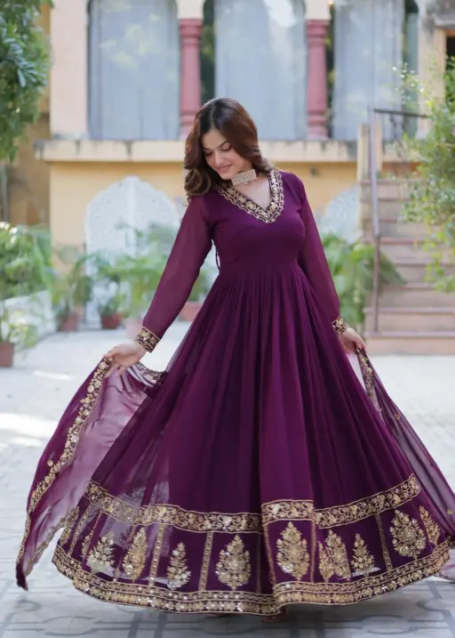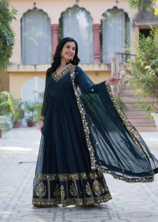 | Top | Faux Blooming Georgette with Zari Thread & Sequins Embroidery 3 Mtr Flair |