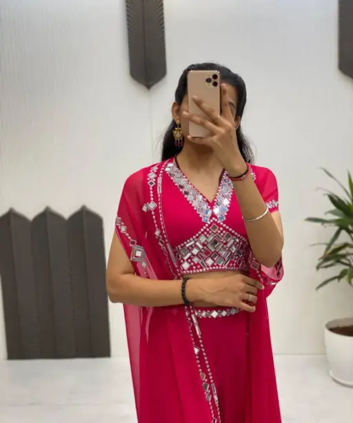 Top: Georgette with Embroidery & Original Mirror Work | Inner: Micro | Height: 13” | Free Size