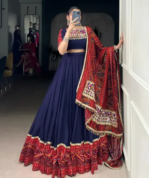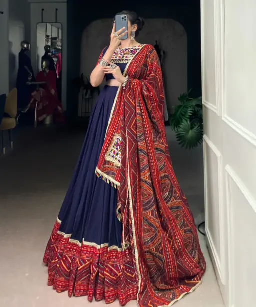 | Choli | Pure Rayon, Real Mirror Gamthi with Cowrie (Kodi) Lace Touch Up, Size 38 (Margin up to 42), Length 15, Sleeve Length 12, Fully Stitched |