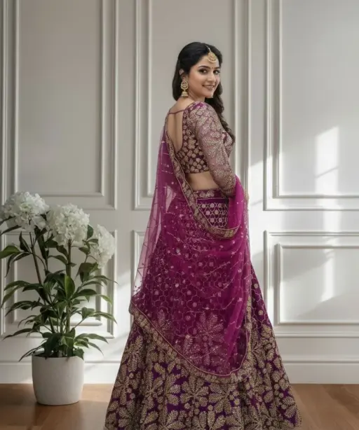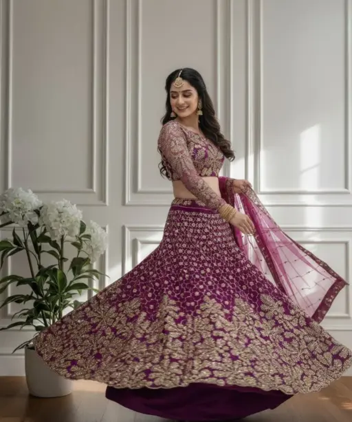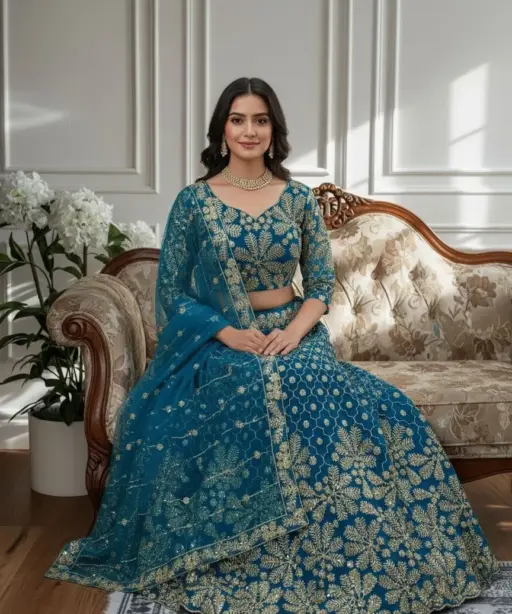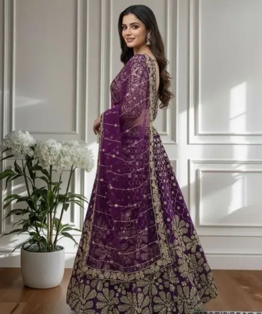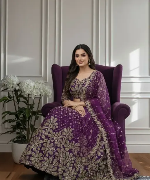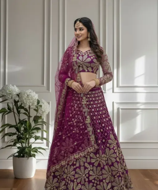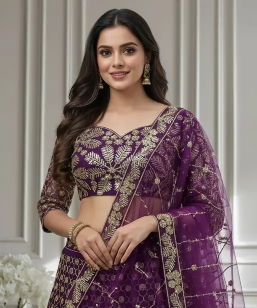 | Lehenga | Butterfly Net with Sequins & Zari Embroidery Work, Semi Stitched, Waist 42”, Length 42”, Flair 3.00 Meter, Inner Micro Cotton with Can-Can & Canvas, With Zip |