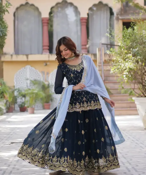 | Plazzo | Faux Blooming with Sequins Embroidered 42 Inch |