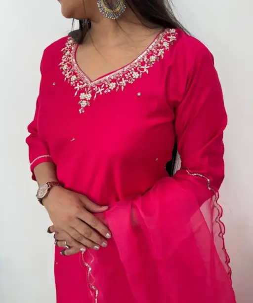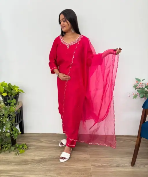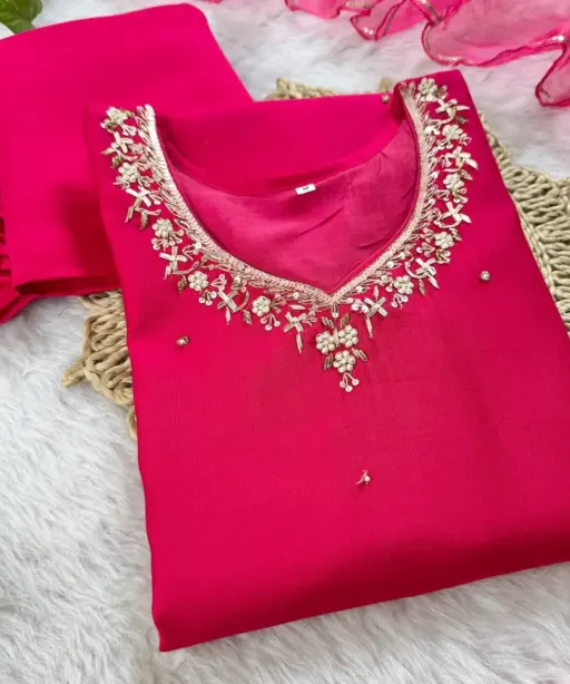 TopPremium Gadwal Cotton Soft Fabric Handwork Sequence & Thread Work on Neck 3/4 Sleeves with Fancy Lace Length 44-46