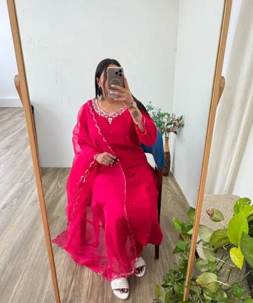 DupattaNylon Organza Silk 4 Side Sequence Border, Length 2.20 Mtr