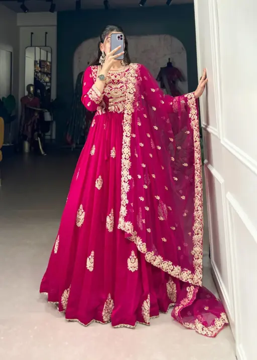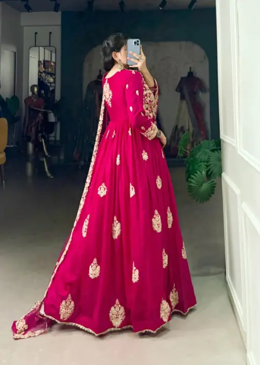 Festive Wear Silk Embroidery Gown With Dupatta