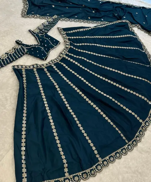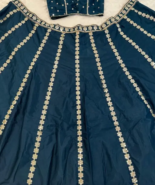| Lehenga | Malai Silk with 9mm Sequins & Zari Work, Flair 3.5 Meter, Can-Can Attached |