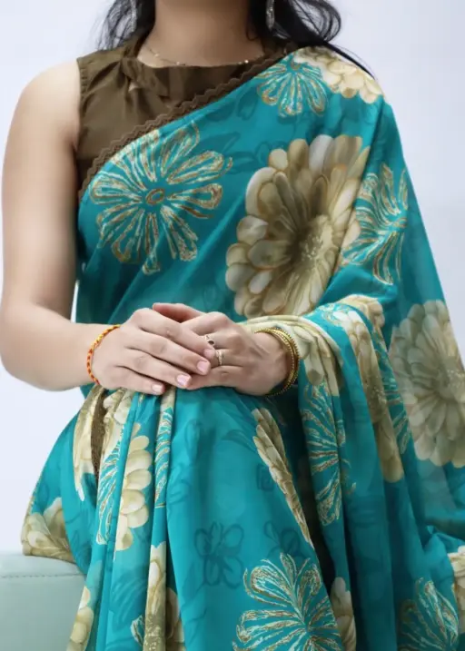 SareeWeightless All Over Floral Printed with Cotton Lace Border 5.5 Mtr