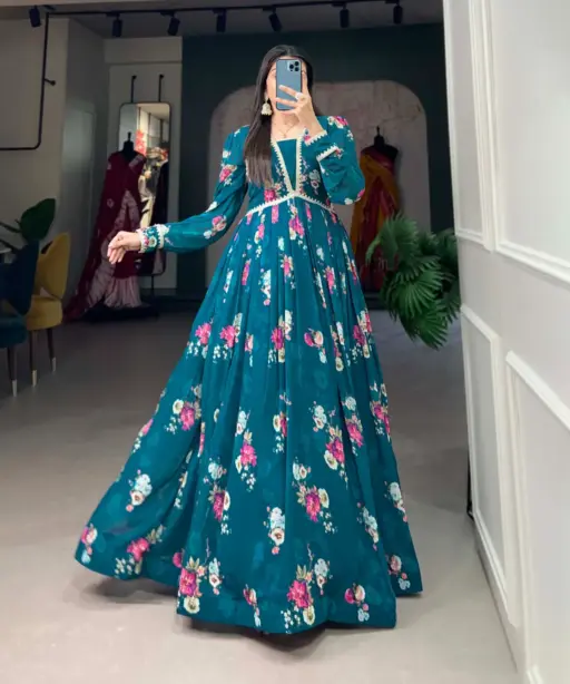 | Top | Georgette Floral Printed With Lace Work Sleeve length 22 |