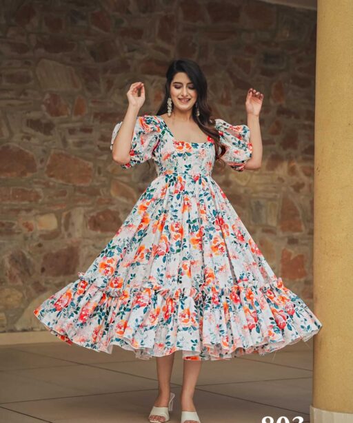 Floral Printerd Summer Wear Dress With Big Flair– Effortless Comfort & Chic Style