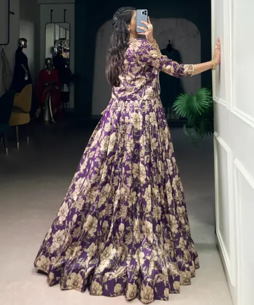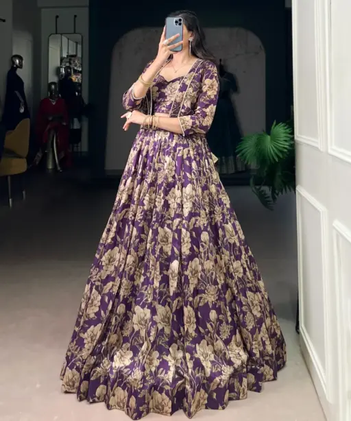 | Lehenga | Tasar Silk with Floral Print, Stitched with Canvas Full Inner, Lehenga Length 41 Inches, Flair 4 Meters, Inner Micro Crepe |
