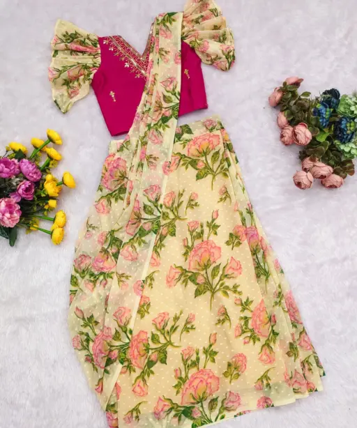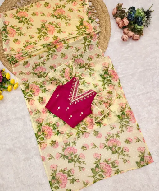SareeThousand Butti Georgette (Full Stitched) with Print Work, Weight 450 gm
