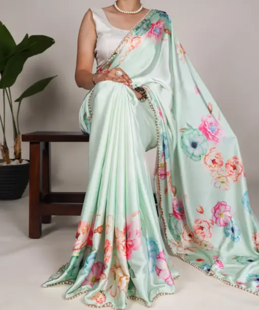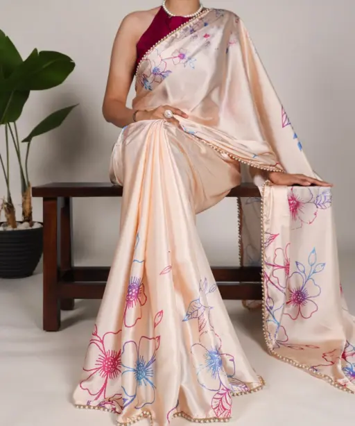 | Saree | Floral print with pearl lace border, 5.5 meters |