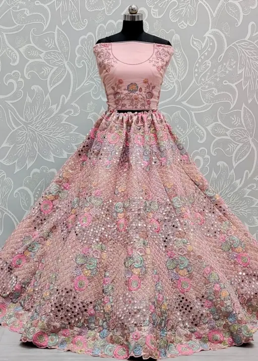 Flower Pattern Embroidery With Real Mirror Wedding Wear Ethnic Lehenga Choli 2736