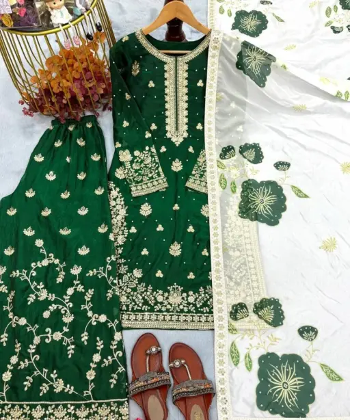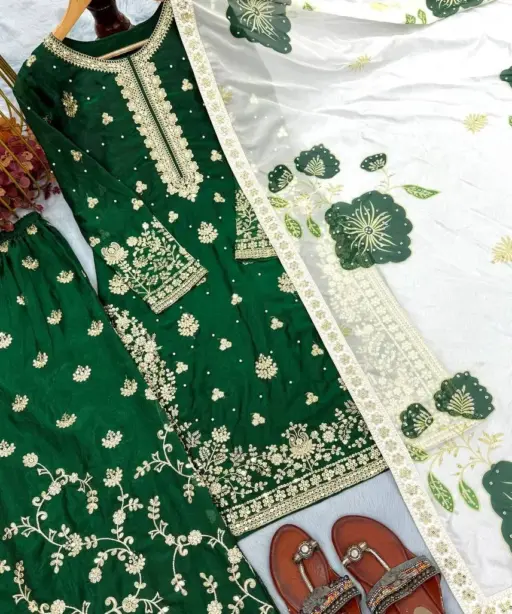 | Bottom | Pur Fendi Silk with Heavy Embroidery 5 mm Sequence Work 39-40 Inc Length |