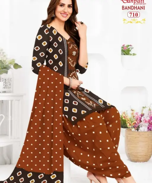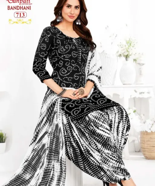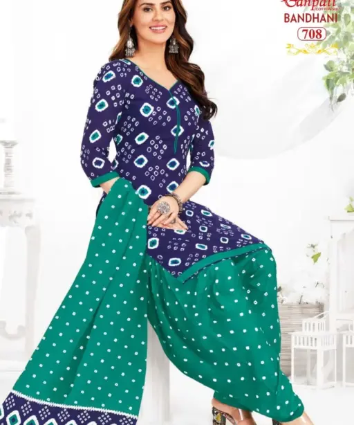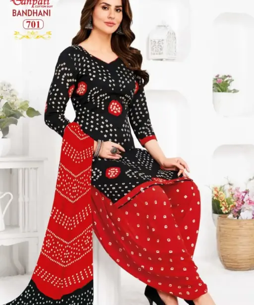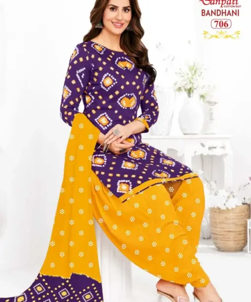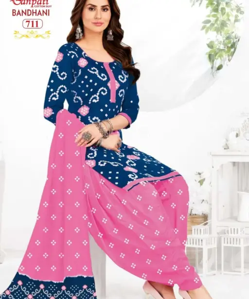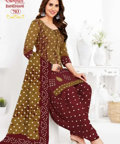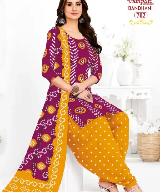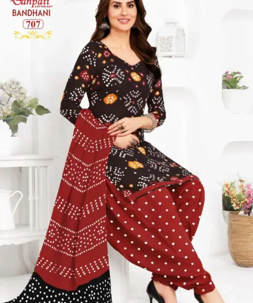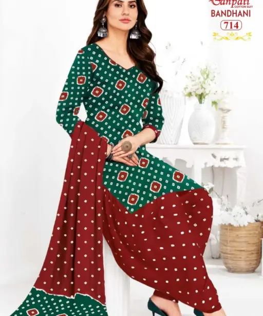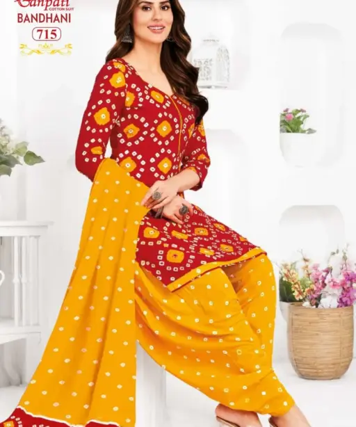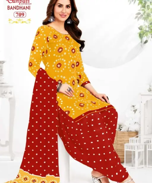 Unstitched Bandhni printed Cotton Salwar Suit Ganpati Bandhani Vol 7 Daily Wear Ethnic Suit