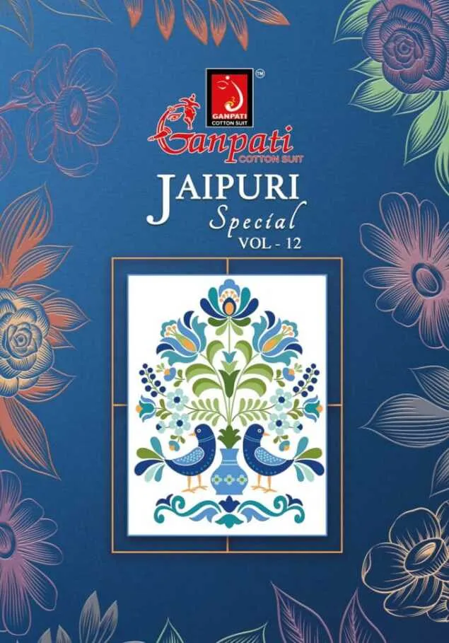 Ganpati Jaipuri Pant Vol 12 Floral Printed Cotton Straight Salwar Suit Unstitched