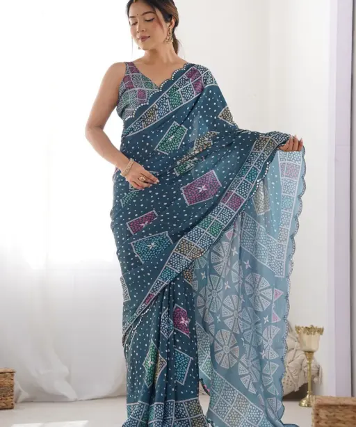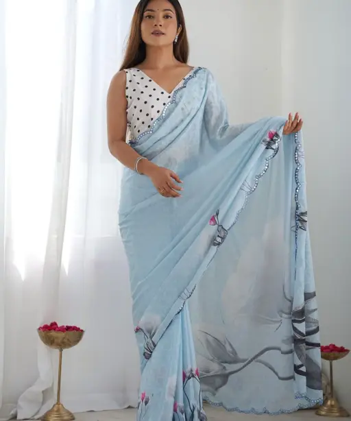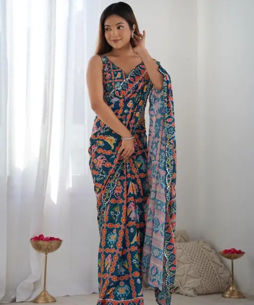 | Saree | Georgette Silk, printed design with mirror work border, length 5.50 mtr |