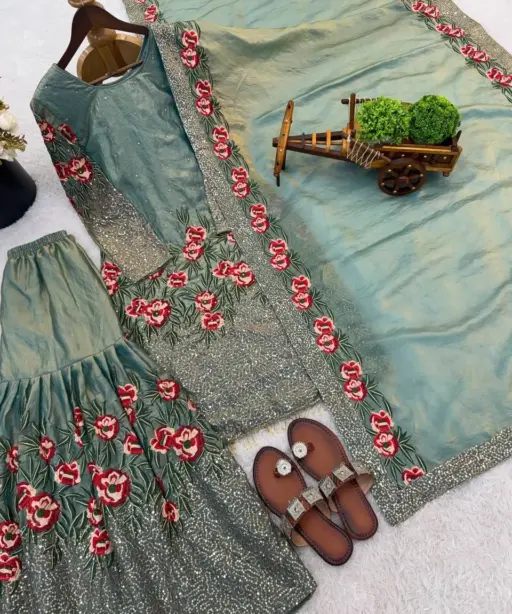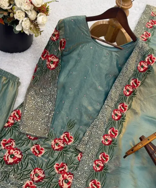 | Bottom | Pure Fendy Silk With Heavy Embroidery Sequence Work With Elastic 39-40 Inch Length |