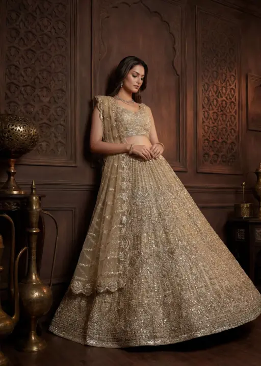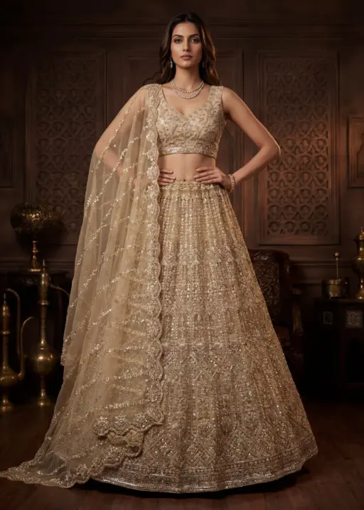 | Lehenga | Net Handwork Motif Handwork Crystal Pipe work Sequins and Thread work Standard Cancan and Canvas attached free size up to 42 |