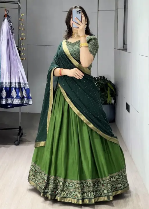 Green Color Traditional Patola Lehenga