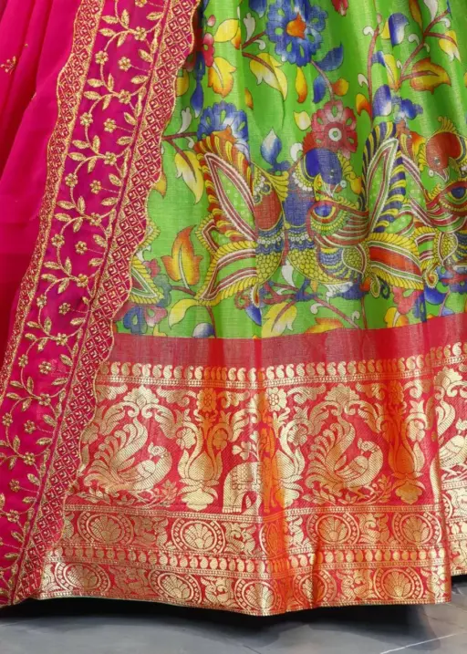 Green Kalamkari Printed Lehenga for Girls