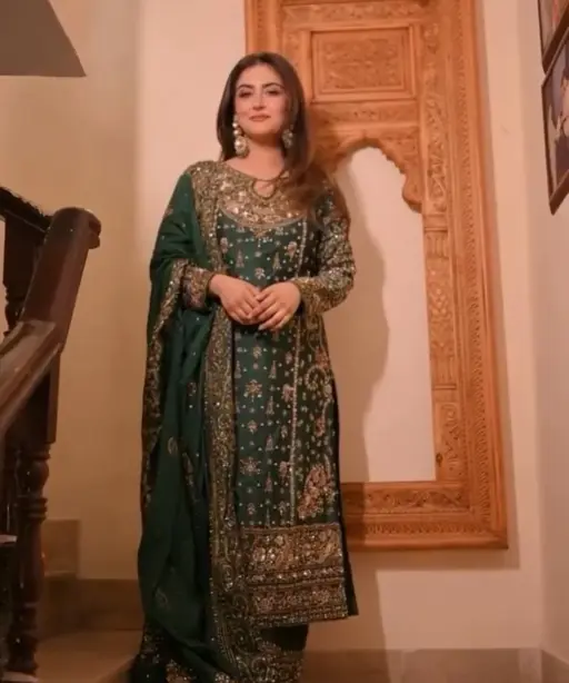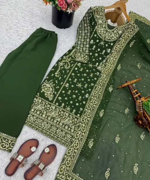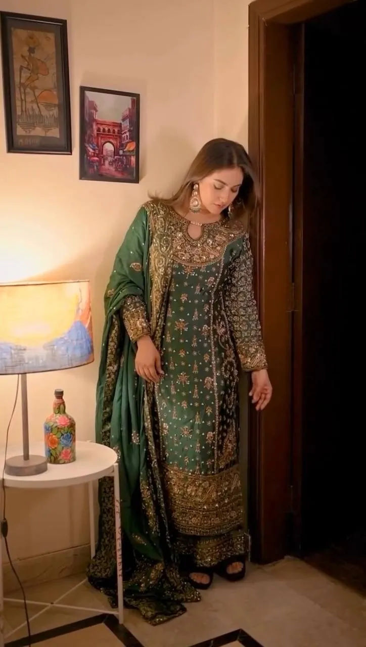 Green Readymade Pakistani Long Suits for Women