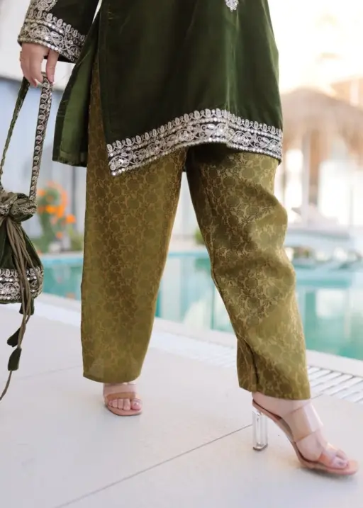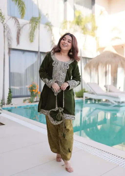 Top9000 Velvet with Rich Zari Coding Embroidered work with inner LENGTH: 32 INCHES