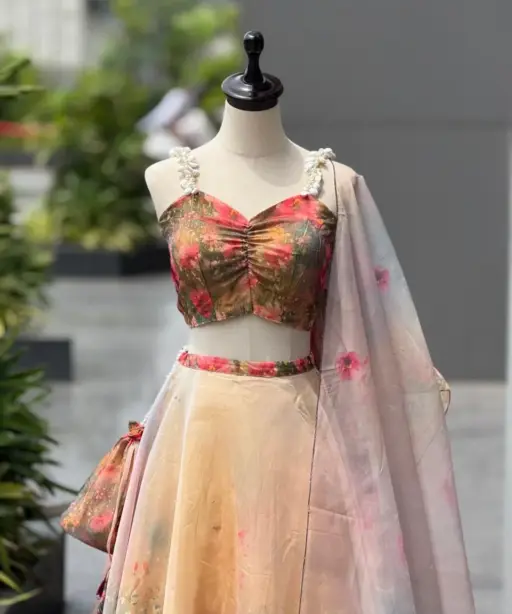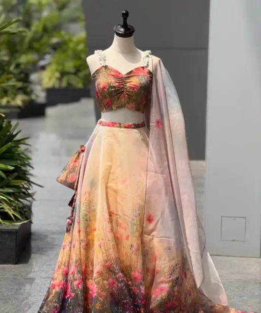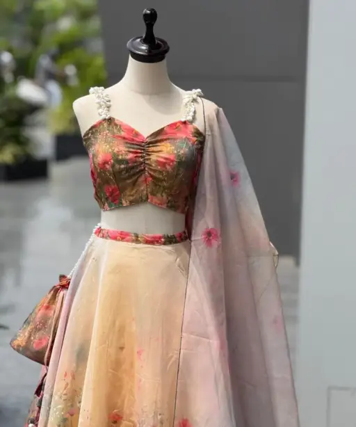 | Lehenga | Pure Organza Digital Printed Lehenga, 8mtr Flair, Canvas Patta, Adjustable Waist Dori |