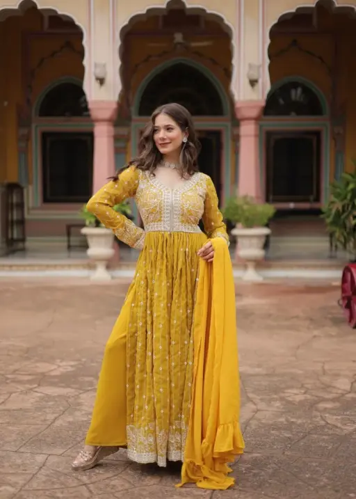 Haldi Function Special Slit Cut Anarkali Dress