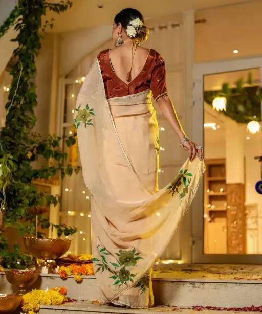 | Saree | pure soft Georgette silk with beautiful digital print flower design Ready to wear saree with beautiful hand work cut dana work full body and border design |