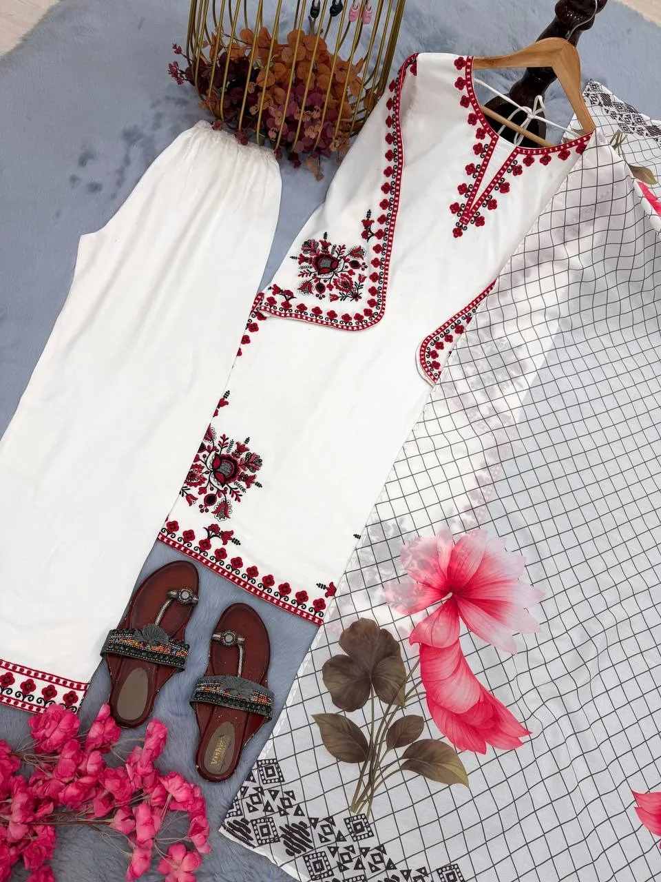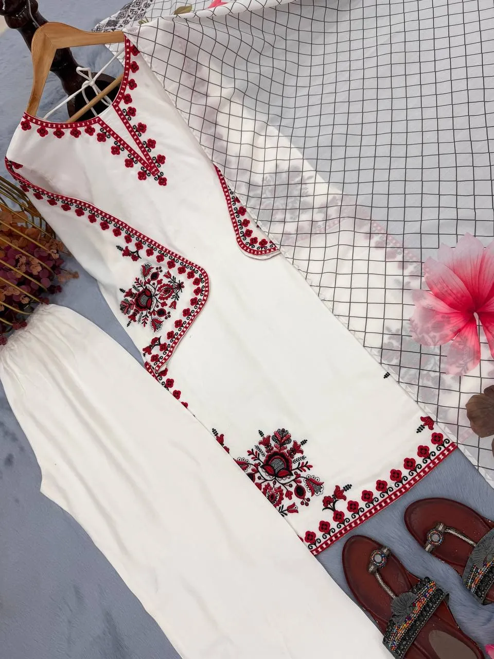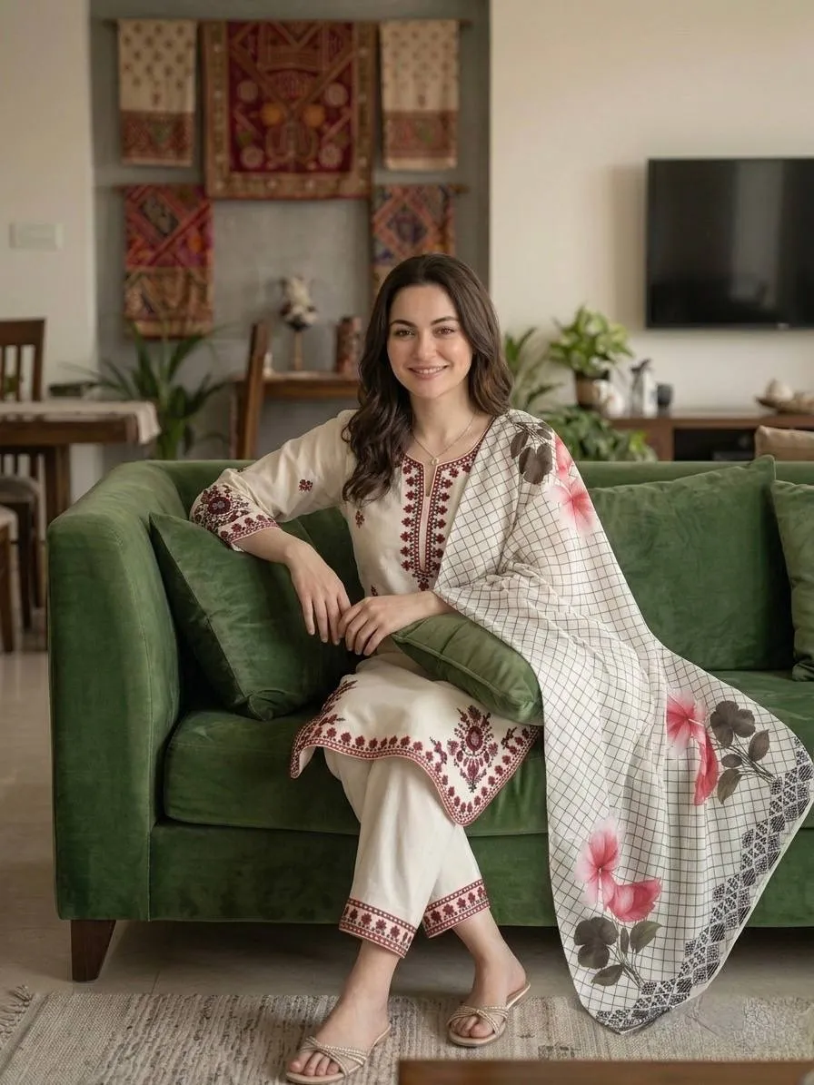 Hania Amir Inspired White plazzo Salwar suit