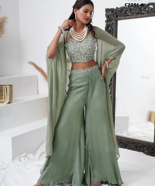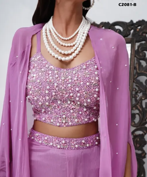 Heavy Blouse Work Crop Top With Shrug Trending Functional Wear