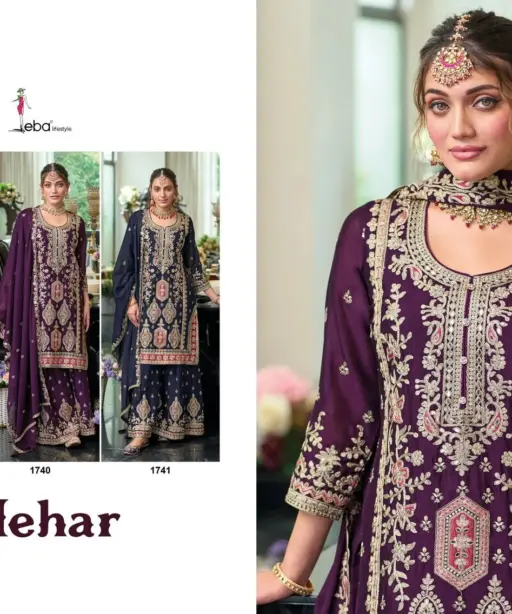 Heavy Chinon Dark Shade Designer Readymade Salwar Suit Eba Mehar
