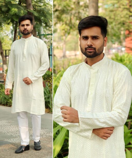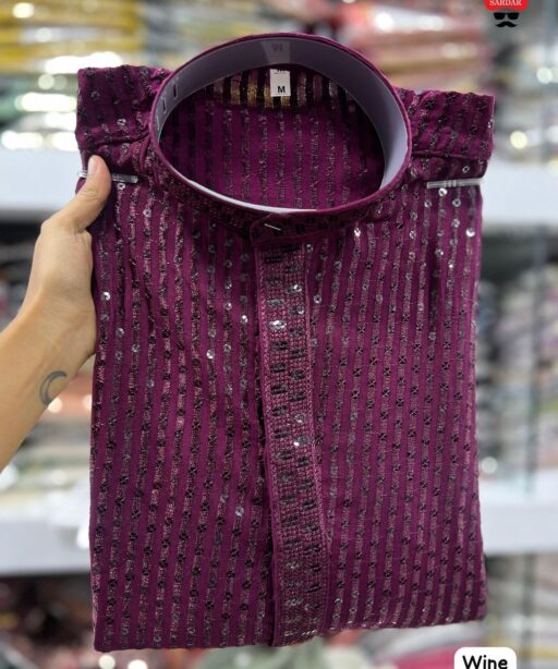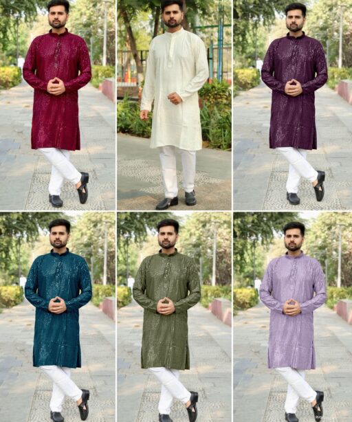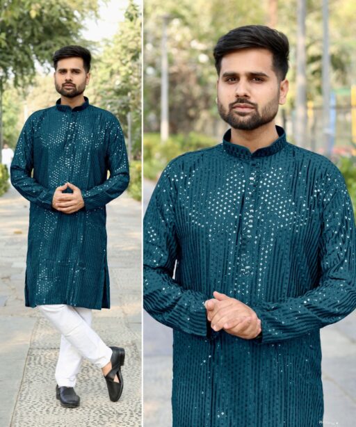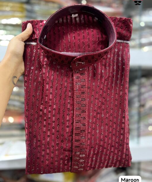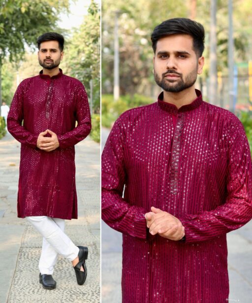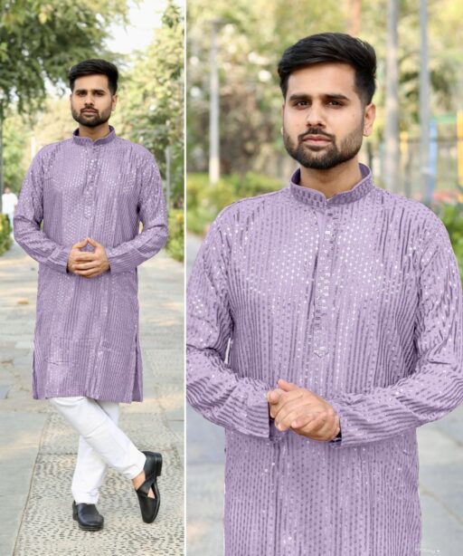 Heavy Embroidery and Sequin Work Men’s Kurta Set
