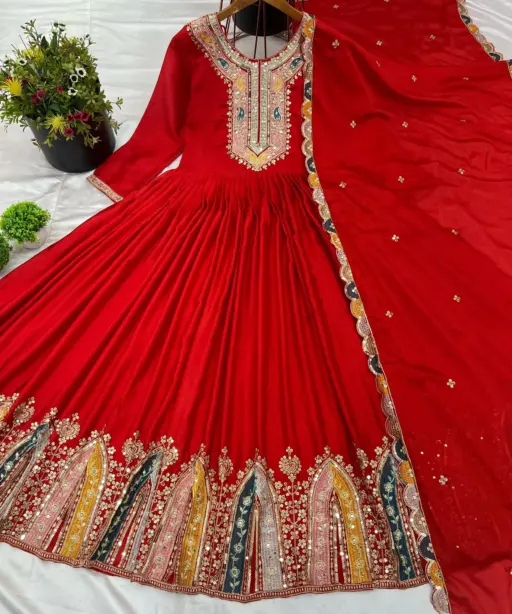 | Dupatta | Heavy Chinon Silk with Heavy Multy Thread Embroidery Sequence Work |