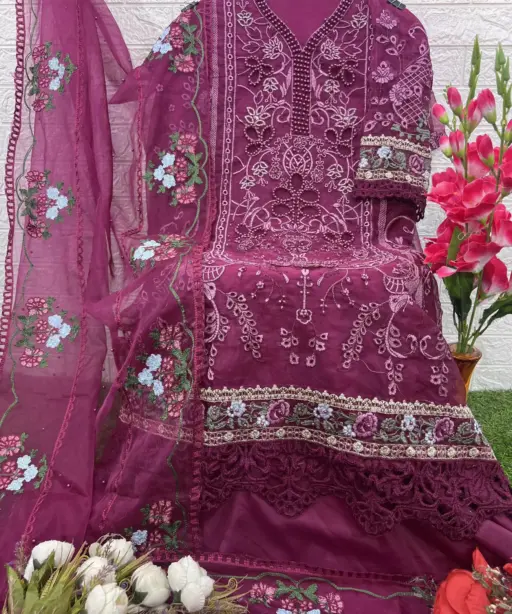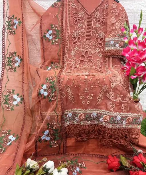 | Top | Organza Fabric with Heavy Embroidery, Applique & Pearl Work |