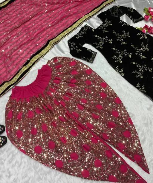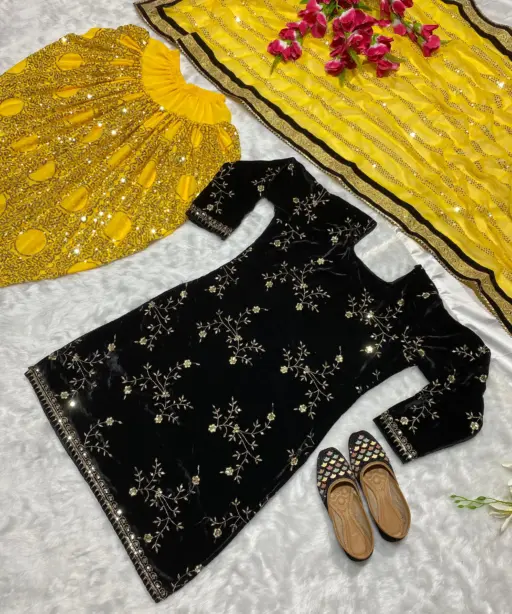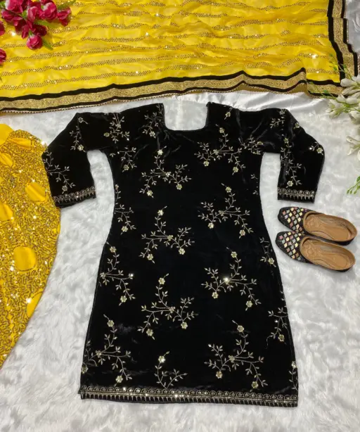 | Top | Heavy Viscose Velvet with Heavy Embroidery and 5mm Sequence Work, Inner: Micro Cotton, Length 38 Inches |