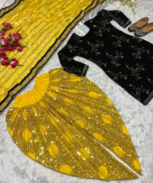 | Dupatta | Heavy Faux Georgette with Viscose Velvet and Embroidery 5mm Sequence Work, Length 2.30 Meter |