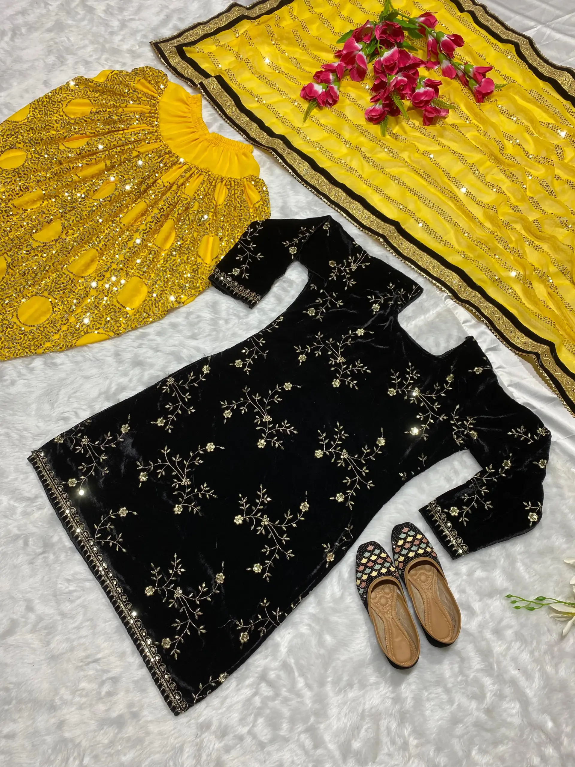 Top | Heavy Viscose Velvet with Heavy Embroidery and 5mm Sequence Work, Inner: Micro Cotton, Length 38 Inches |