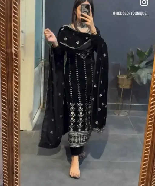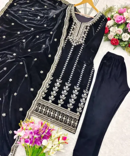 | Top | Pure 9000 Viscous Velvet with Heavy Embroidery 5mm Sequence Work with Sleeves, Inner Heavy Micro Cotton, Length 46-48 Inch, Size M(38), L(40), XL(42) with XXL(44) Margin, Fully Stitched Ready to Wear |