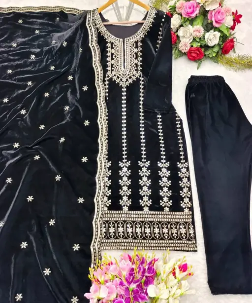 | Dupatta | Pure 9000 Viscous Velvet with 5mm Sequence Embroidery Work, Fully Stitched |