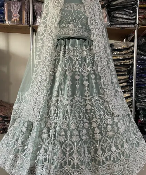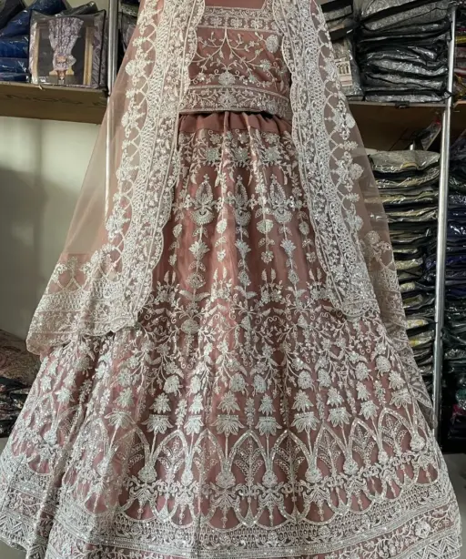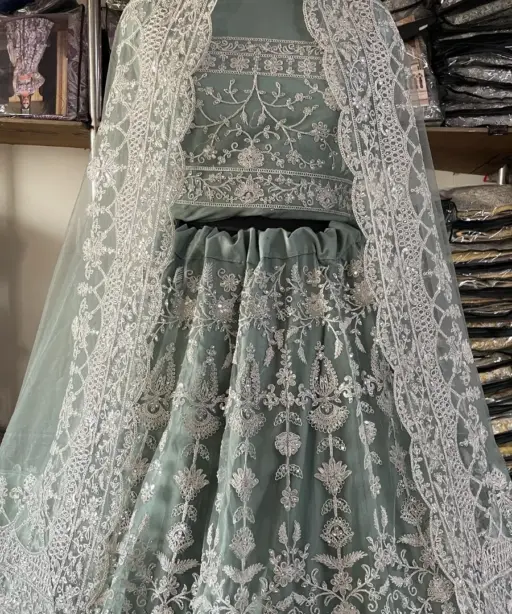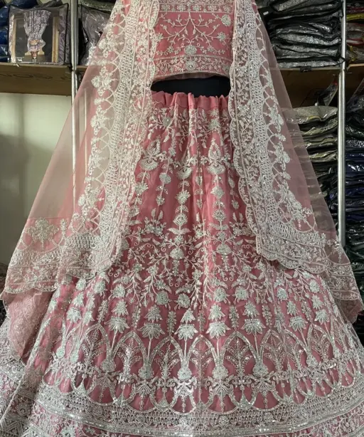 | Lehenga | Heavy butterfly net, Beautiful Embroidery work, Fancy dori sequence work, Full of diamonds, With big Can Can and Canvas added, Customize up to 46 |