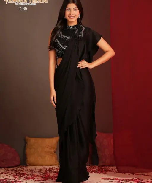 Heavy Work Blouse Ready To Wear Embellished Black Party Wear Saree