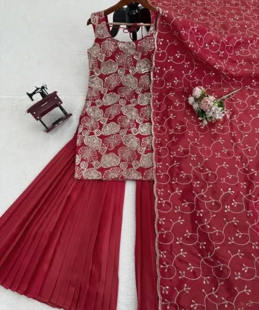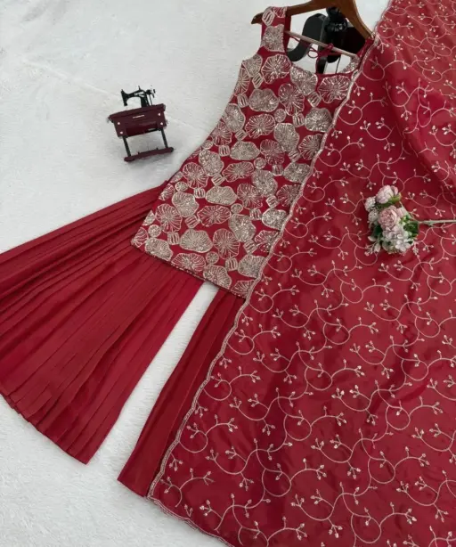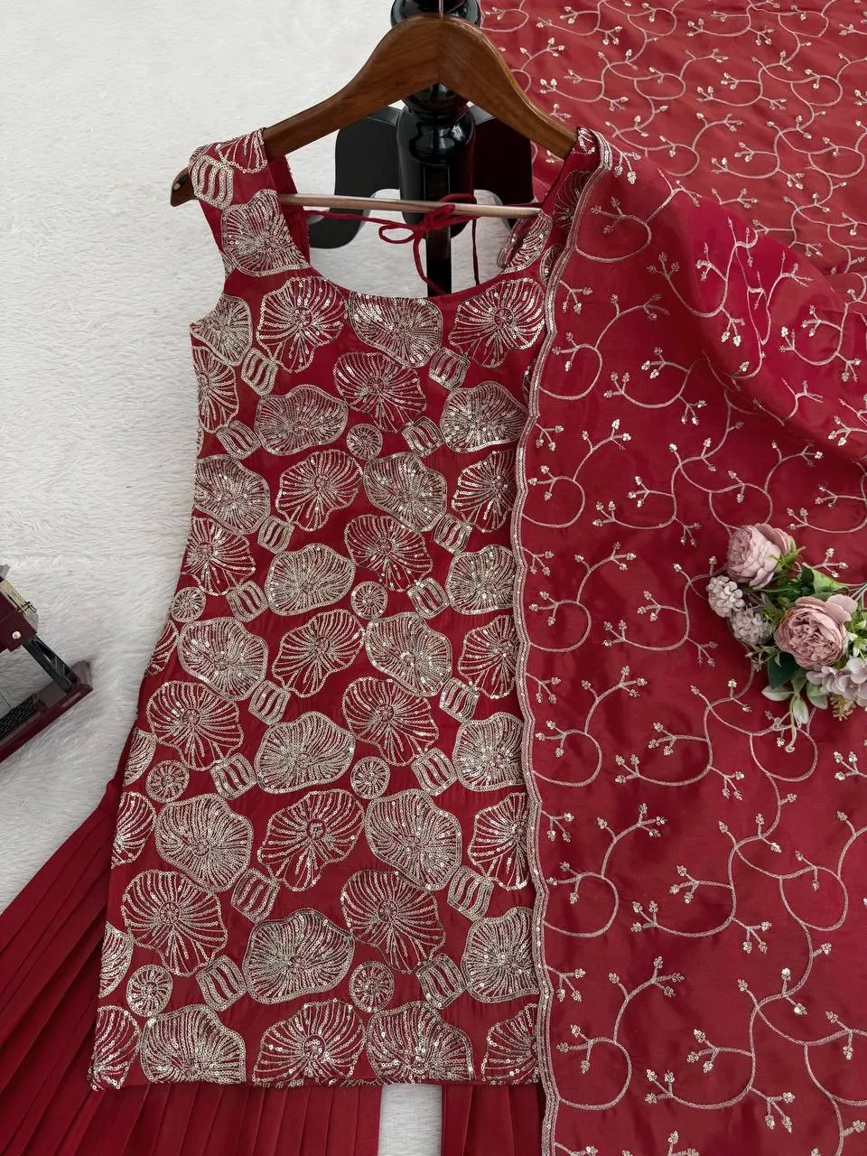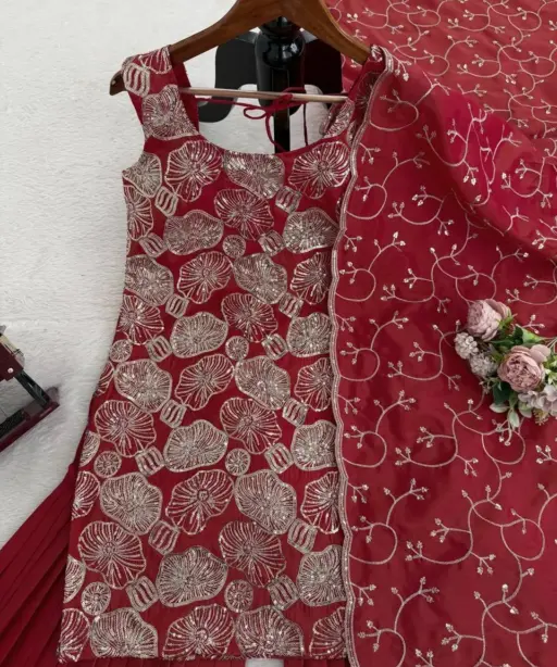 DupattaSimmer silk thread with sequence with 4-Side lace border Length: 2.2 meters