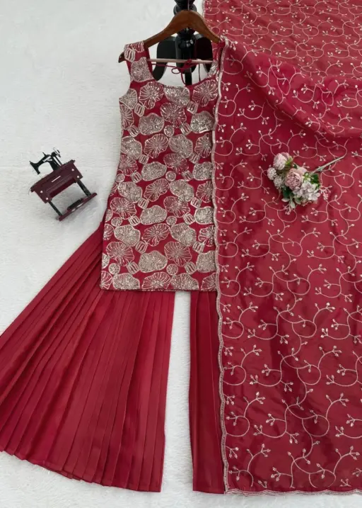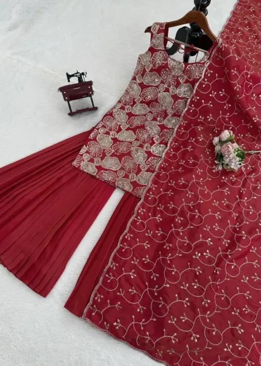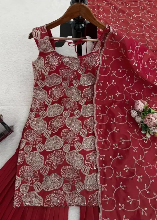 | Dupatta | Simmer silk thread with sequence with 4-Side lace border Length: 2.2 meters |