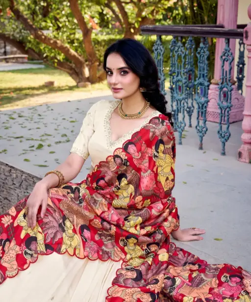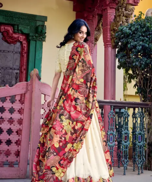 | Dupatta | Tasar Silk with Kalamkari Print, Foil Work, and Scallop Border (2.5 Meter) |