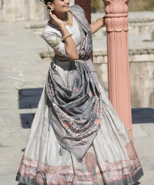 Kalamkari Peacock Printed Lehenga Choli For Wedding