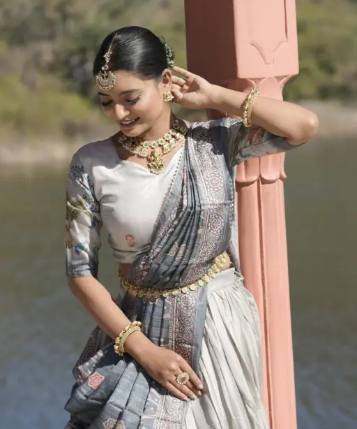 | Dupatta | Pure Manipuri Silk with Print, Gota Patti, and Tassels (2.35 Meter) |