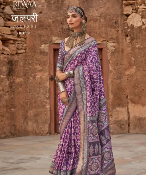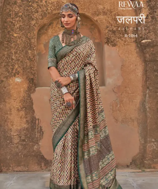 Kalamkari Printed Ethnic Saree Festive Wear Design 2024 Rewaa Jalpari Catalog