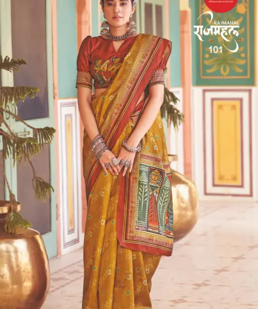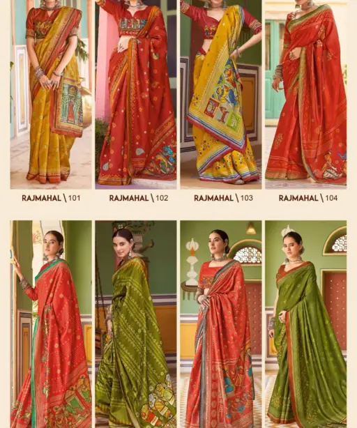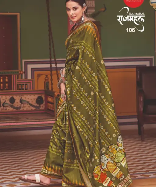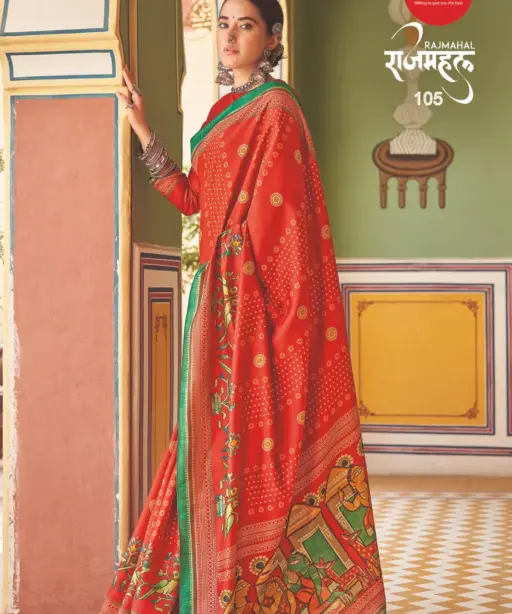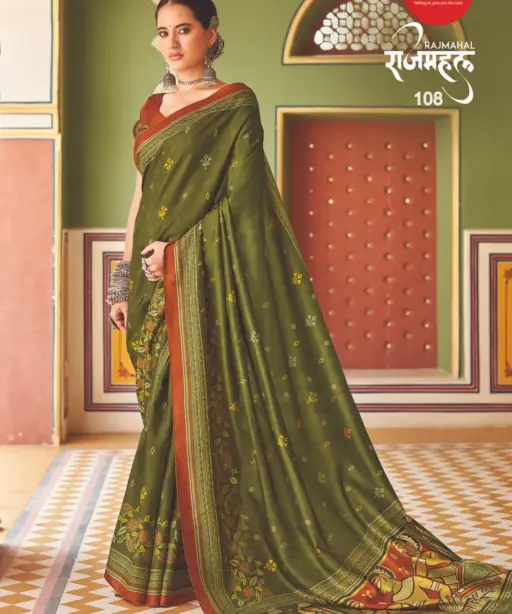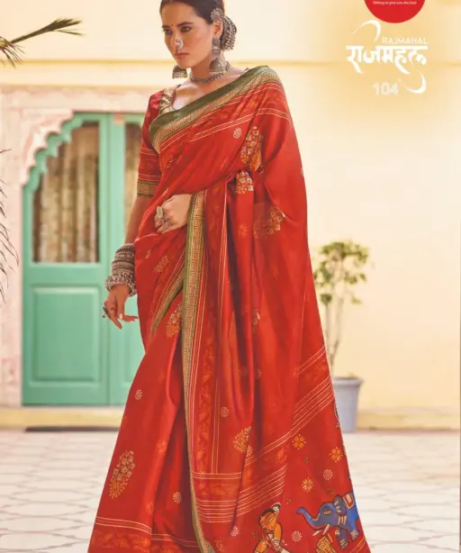 Kalamkari Printed Silk Saree Apple Rajmahal Vol-1