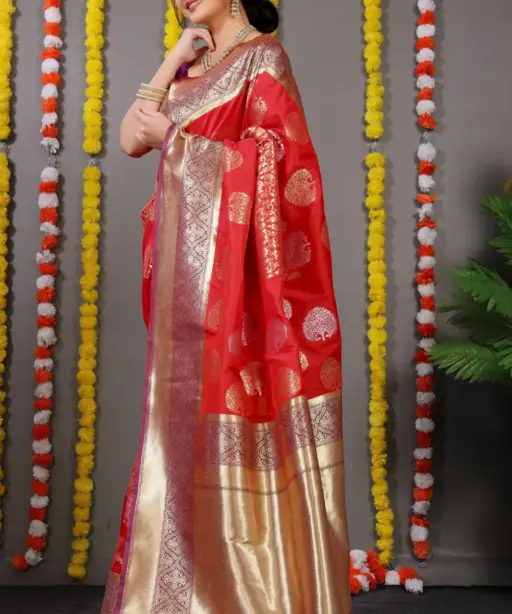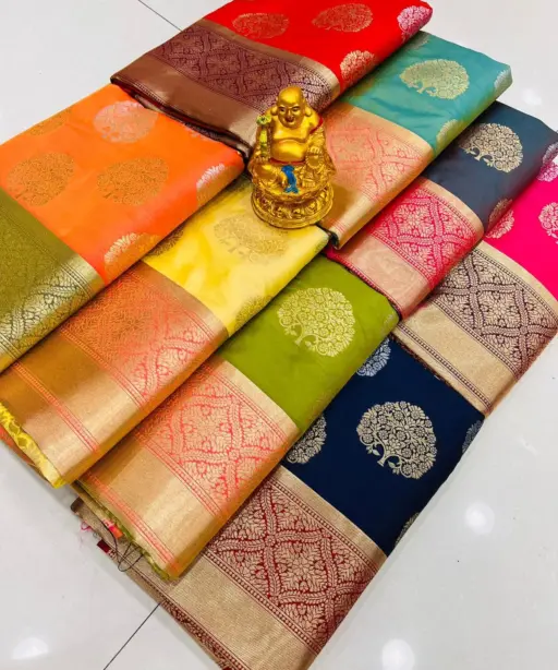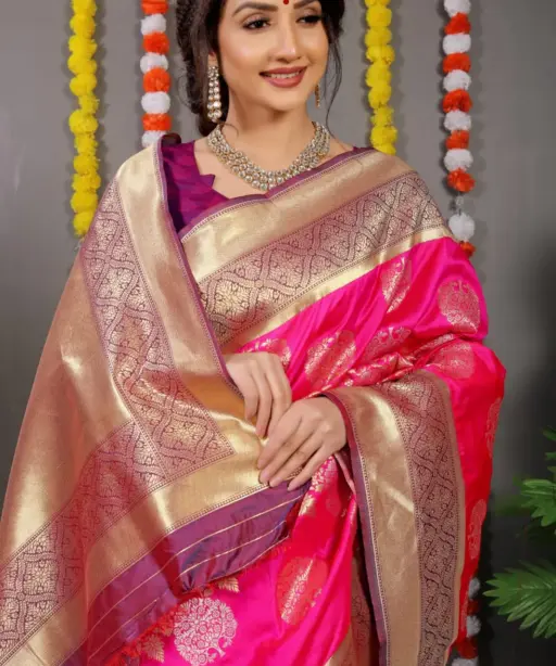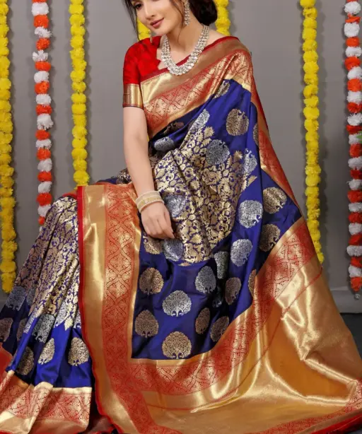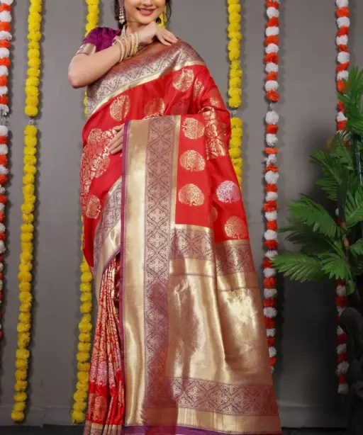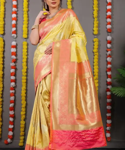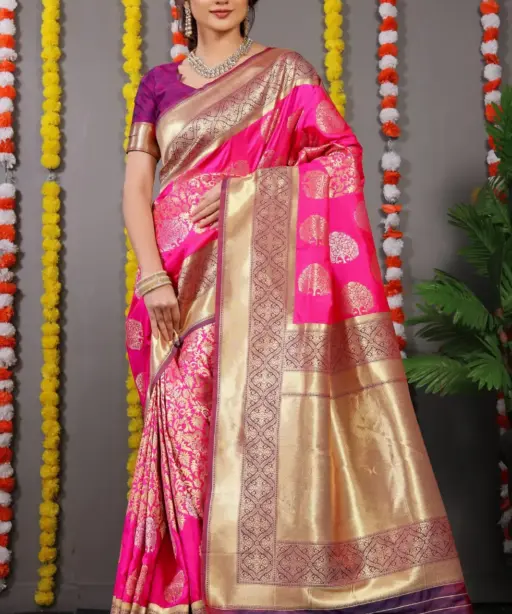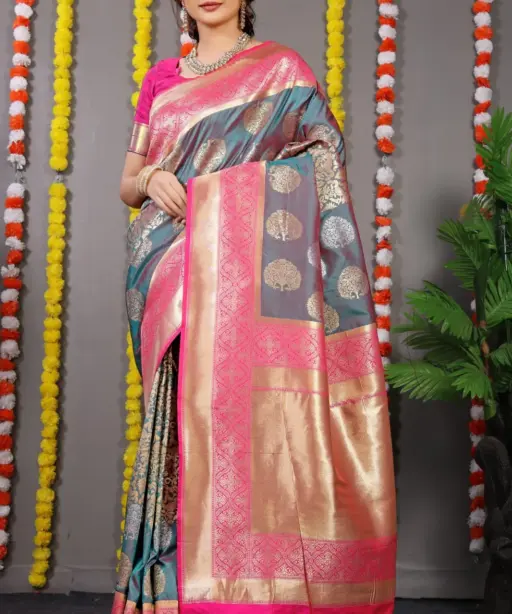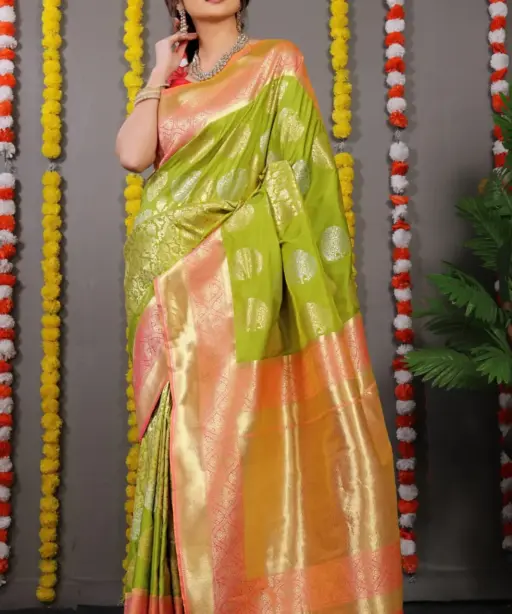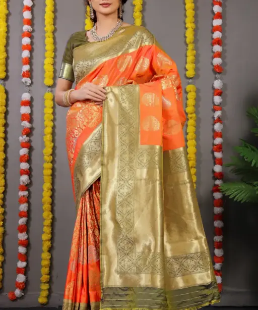 | Saree | Kanchipuram Pure Silk Handloom with Silver & Gold Zari, Soft Silk Finish |